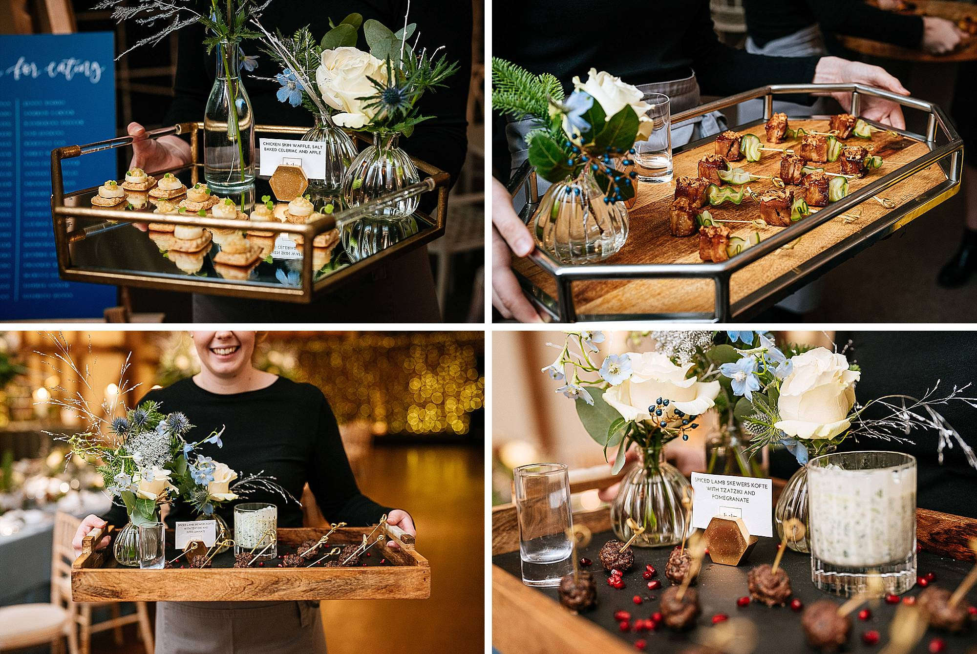 Kalm Kitchen are the recommended caterers as a lot of stunning wedding venues I work at, including Micklefield Hall, Millbridge Court, Botley Hill Barn and Morden Hall. There is a reason that these venues recommend them and that is because they are FANTASTIC! Their food is stunning…just take a look at the photos below! Their canape presentation is a work of art, and the food tastes as good as it looks.